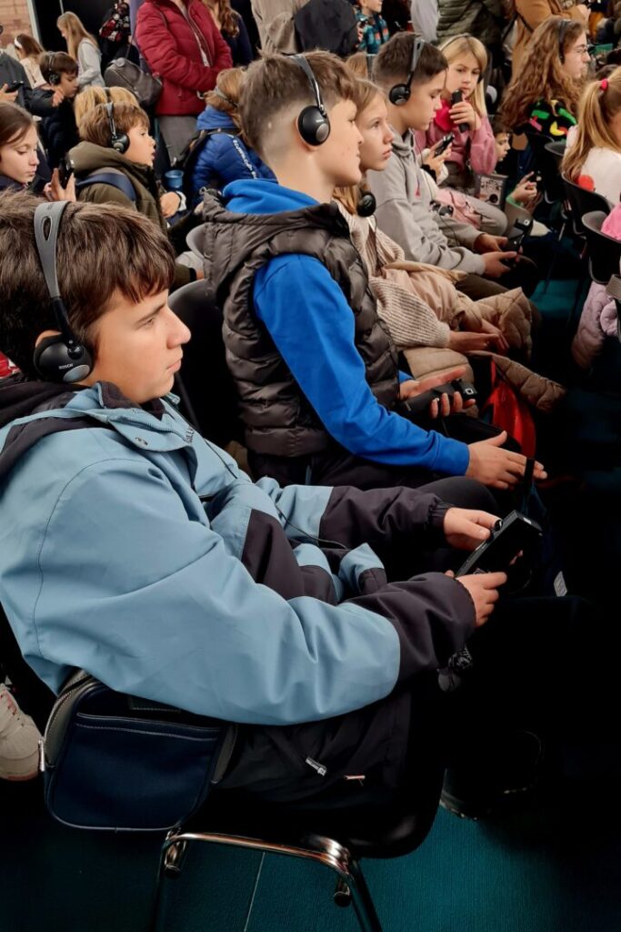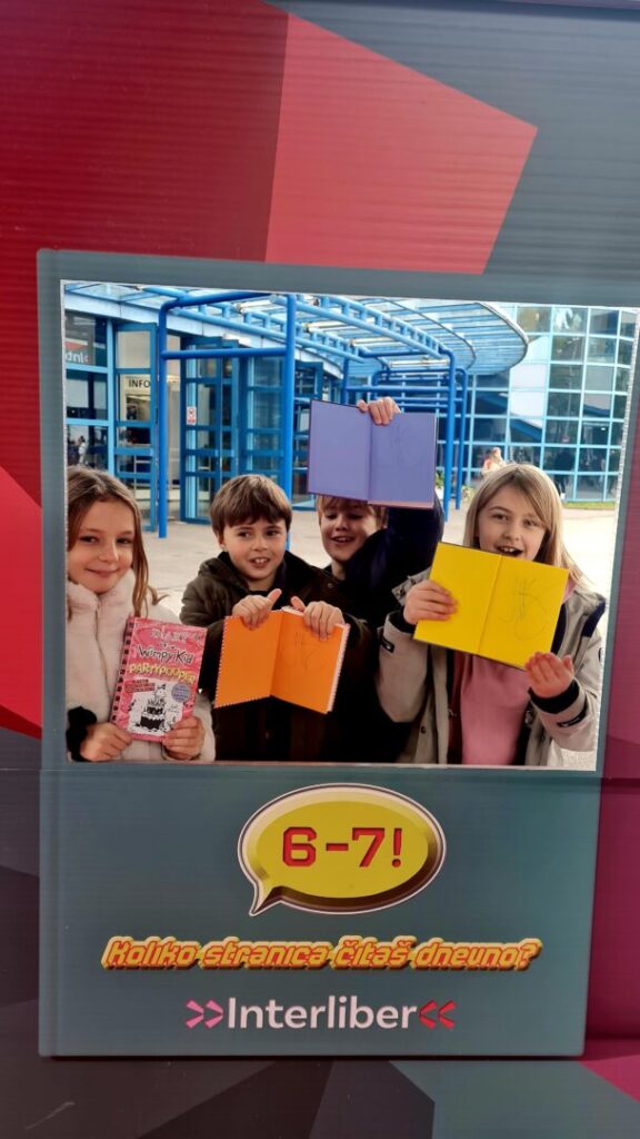 Svake se godine veselimo odlasku na Interliber, a ove smo godine imali jedan razlog više za veselje – susret s Jeffom Kinneyjem! Čim smo došli na Velesajam uputili smo se u Paviljon 5 i zajedno s mnoštvom druge djece i odraslih čekali susret s jednim od omiljenih i najpopularnijih autora današnjice. Jeff Kinney autor je popularnog serijala Gregov dnevnik koji je popularan u cijelom svijetu, pa su tako i u našoj školskoj knjižnici neke od najposuđivanijih knjiga upravo Gregov dnevnik. Nakon razgovora s Jeffom Kinneyjem, koji smo pratili preko slušalica i simultanog prijevoda – koji je za nas isto bio jedno novo iskustvo, čekali smo u redu kako bismo dobili autogram od poznatog autora, a neki su od nas uspjeli se s njim i fotografirati.