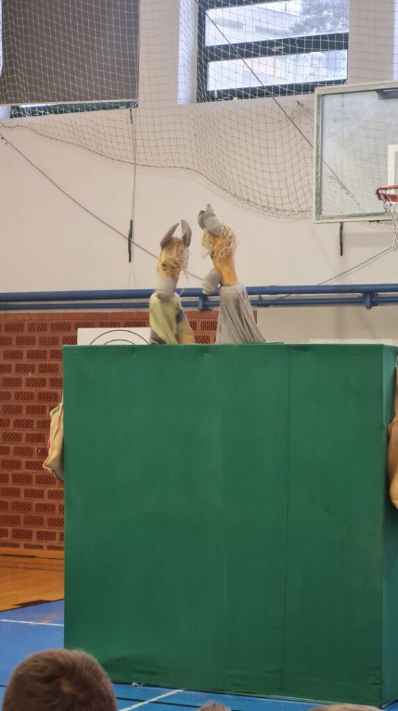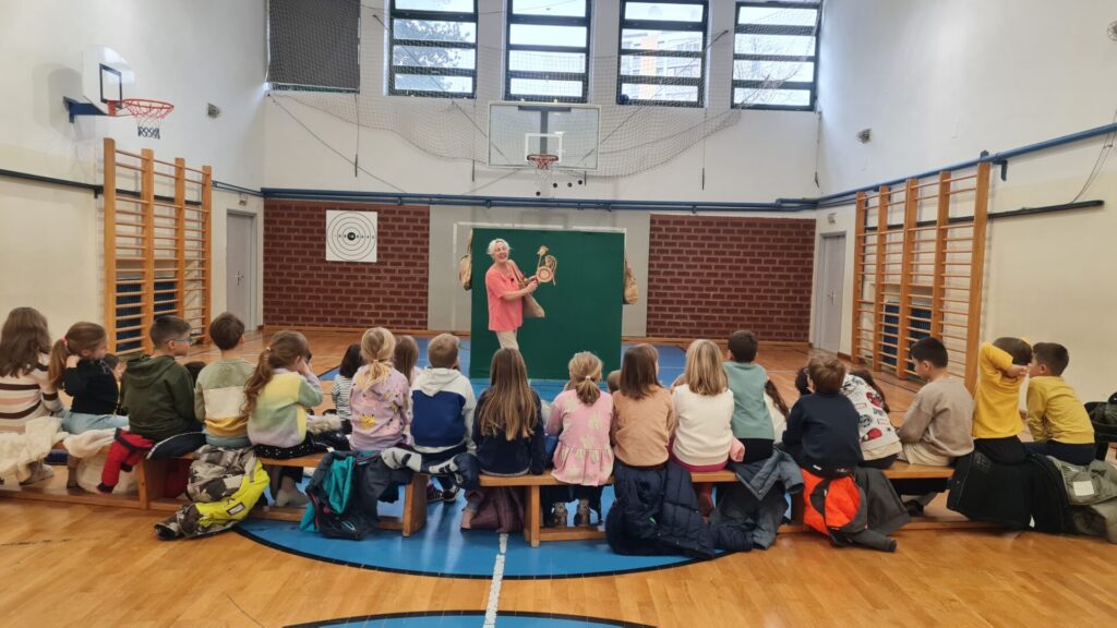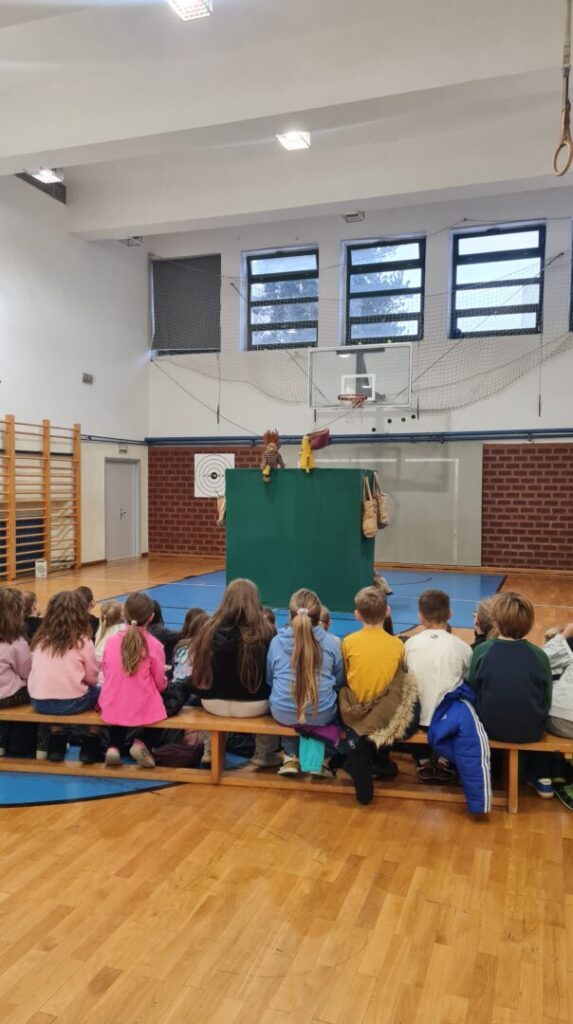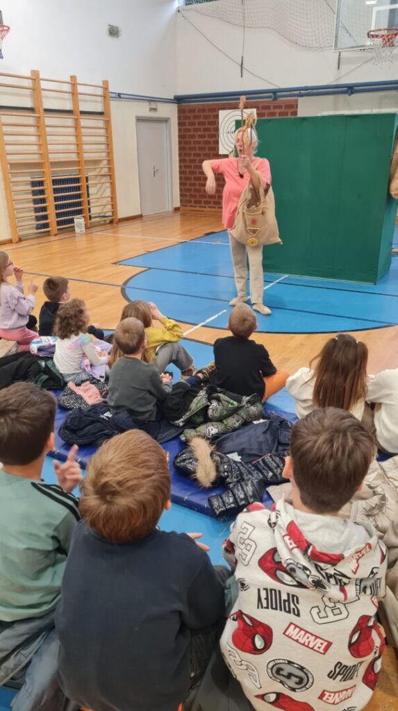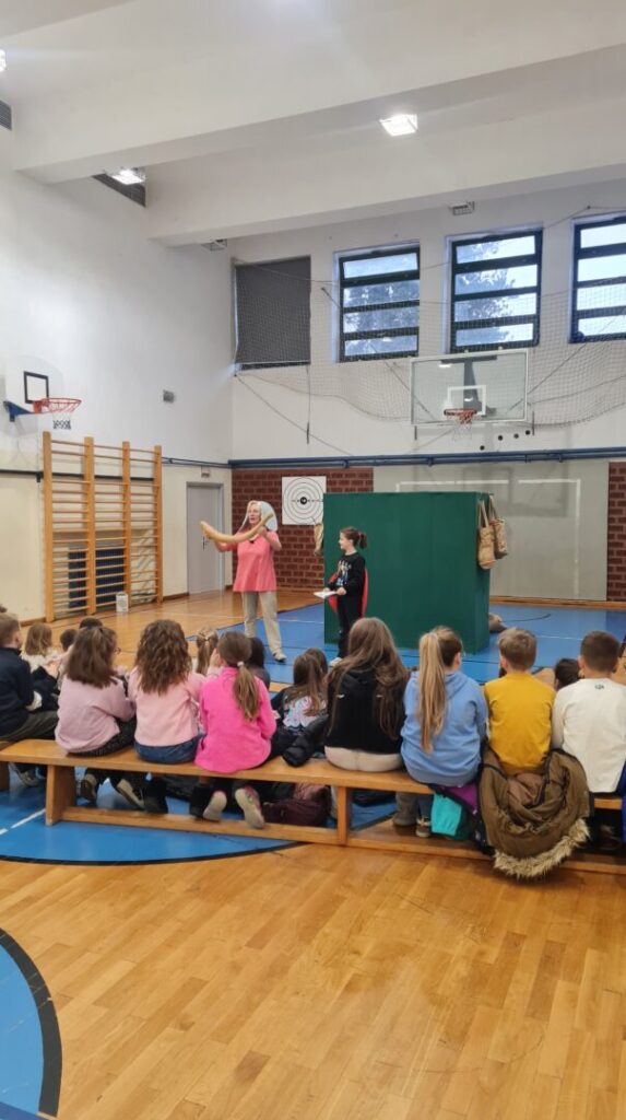 Učenici 1. a, 1. b, 2. a i 2. b razreda imali su priliku danas, 19. studenog družiti se s poznatom dječjom autoricom Jadrankom Čunčić Bandov. Jadranka je našu školsku dvoranu pretvorila u malo kazalište u kojemu su se učenici na interaktivan način upoznali s Jadrankinim lutkama s kojima nas je odvela u zemlju mašte, šale, trica i zvrndalica. Vidjeli smo od čega se sve mogu napraviti najrazličitije lutke uz malo mašte. Sigurno niste znali da se od četke može napraviti pas, od košare konj, a od spužve žaba. Jadranka nam je pokazala pregršt svojih tikvi i najrazličitijih lutaka koje radi od njih te ih oživjela u svojim pričama pred nama.
