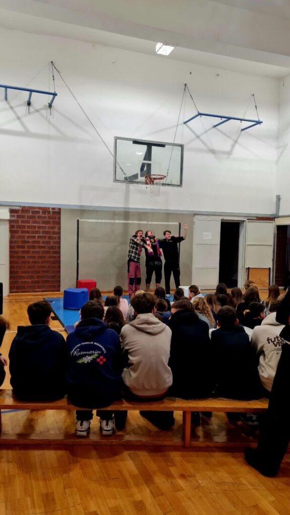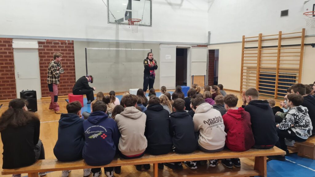 U srijedu, 11. veljače u našoj školskoj dvorani glumci iz Kazališta Lutonjica Toporko održali su predstavu Raspucavanje za učenike svih sedmih razreda naše škole. Predstava govori o tri školarca kroz čiju se stvarnost reflektiraju brojne opterećujuće činjenice u današnjem hrvatskom multikulturalnom društvu. Izlaz iz svih problema je u zajedništvu koje nam na najbolji način pokazuju igrači naše nogometne reprezentacije oslonjeni upravo na veličanstvenu utakmicu Hrvatske i Brazila u četvrtfinalu Svjetskog prvenstva 2022. godine u Dohi. Režiju i scenarij predstave potpisuje poznati dugogodišnji kazališni djelatnik Vid Balog, a u predstavi Bornu, Aleša i Kemala glume Jakov Jozić, Jan Novosel i Roko Raguž.