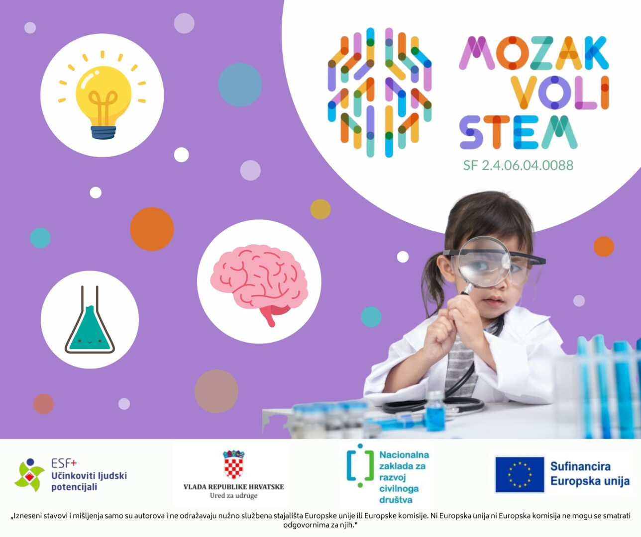 Projekt „Mozak voli STEM“ ukupne je vrijednosti 299.400,81 EUR te se sufinancira sredstvima Europske unije iz Europskog socijalnog fonda plus (85%) i sredstvima državnog proračuna RH (15%) u okviru programa „Učinkoviti ljudski potencijali 2021. – 2027.“ kroz poziv „Jačanje kapaciteta organizacija civilnoga društva za promociju STEM-a“.
